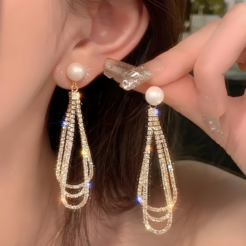Gouden Kristallen Kwastje met Parel Bengelen Oorbellen - Alta