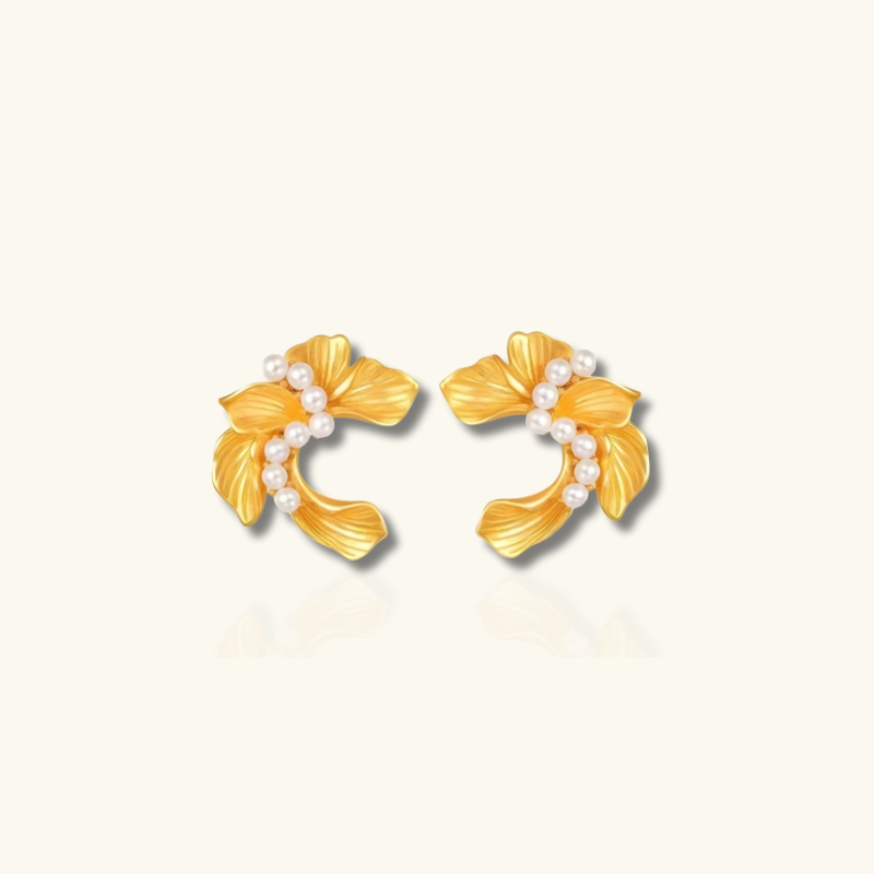 Gouden Vintage Bloemoorbellen met Parel – Sienna