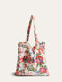 Luxe linnen schoudertas met elegante tropische bloemenprint