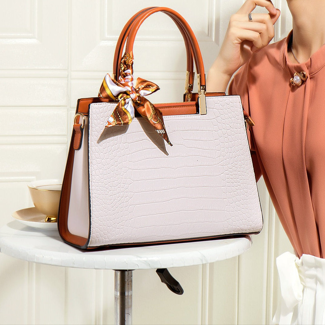 Dameshandtas met krokodilleneffect en decoratieve sjaal - Mireille
