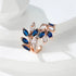 Verstelbare ring met blauwe kristallen en verfijnd bladmotief