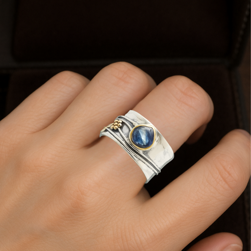Gouden en zilveren ring met turquoise-inleg voor een elegante en verfijnde uitstraling