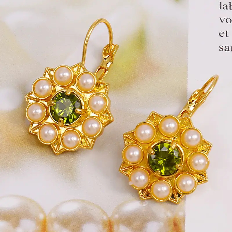 Gouden Bloem Oorbellen met Parels - Janni