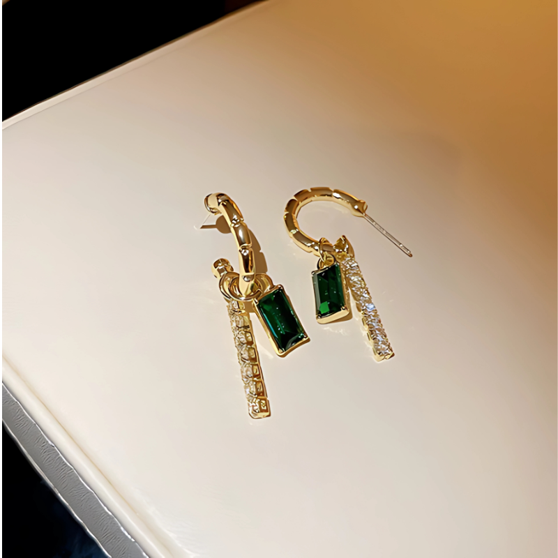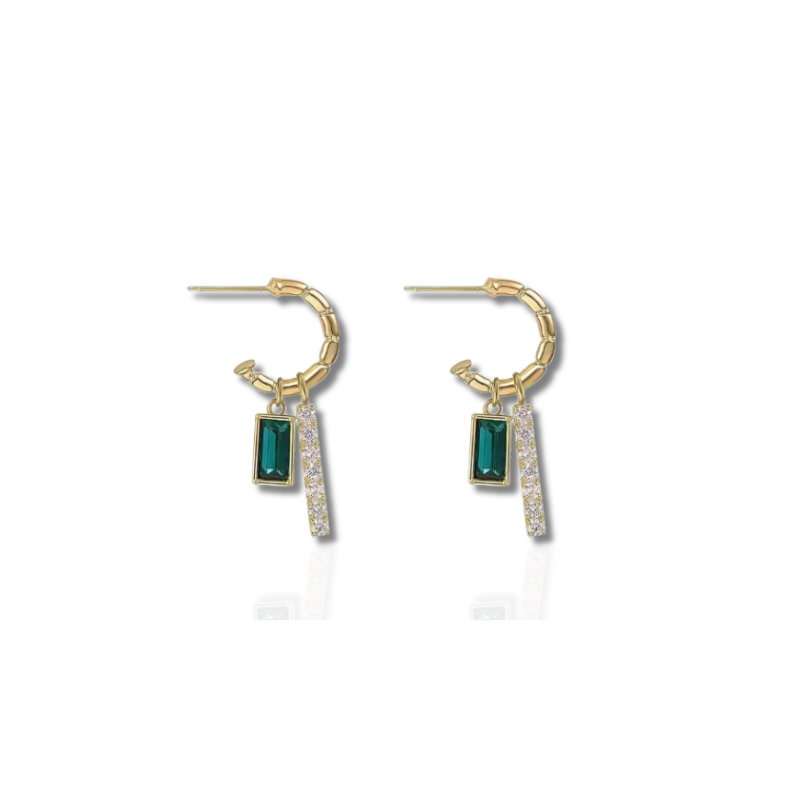 Gouden Geometrische Oorringen met Groene Kristal - Greta