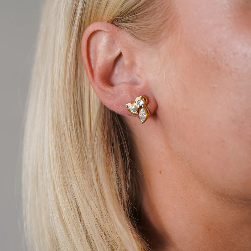 Gouden Onregelmatige Blad Zircon Oorbel - Alani