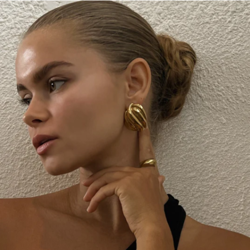 Goudkleurige Oorknopjes met Golvende Textuur - Ruth