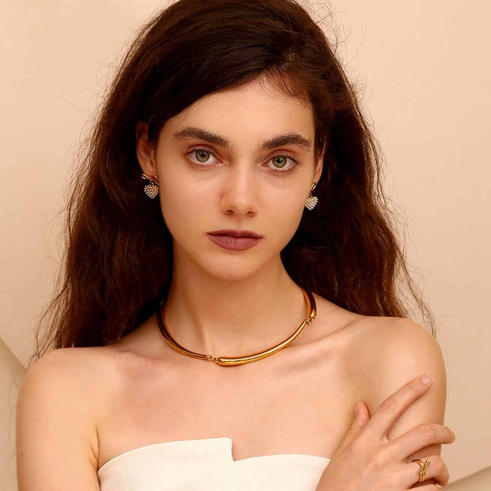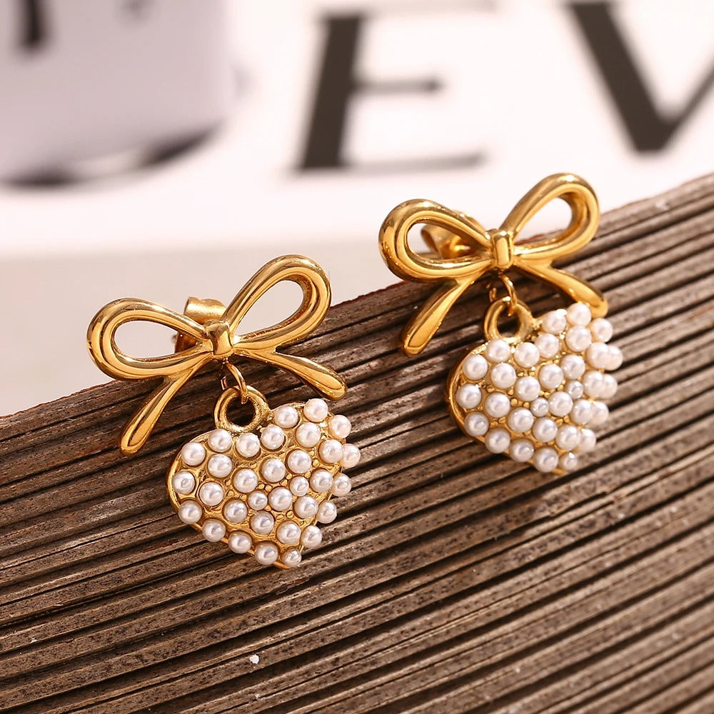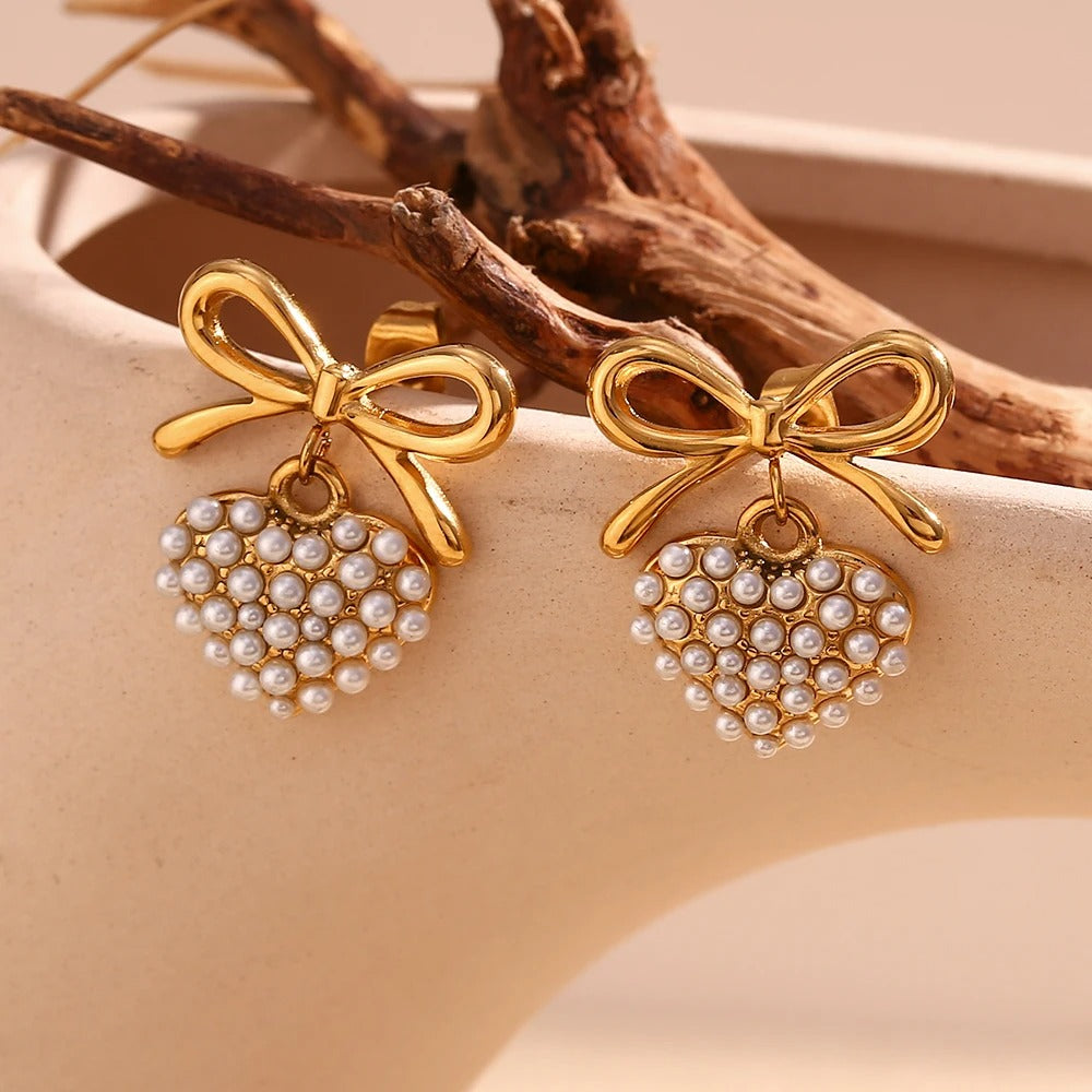 Goudkleurige Strikoorbellen met Hartvormige Parel – Carrie