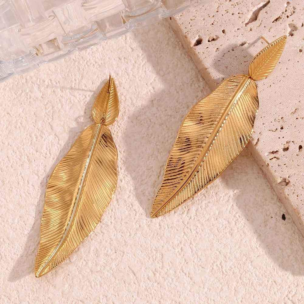 Goudkleurige Verenoorbellen met Bladmotief – Mary